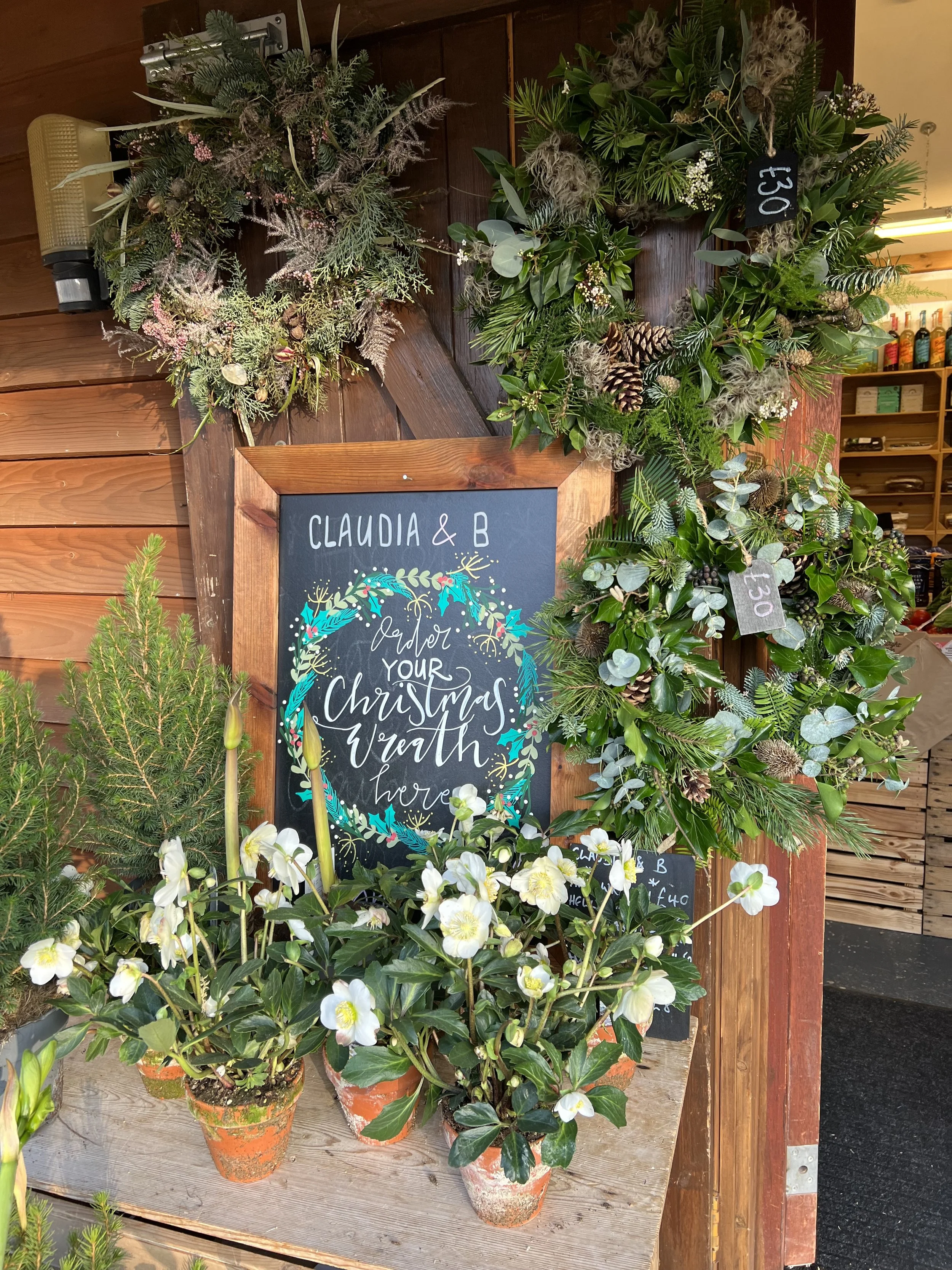 We will have a selection of locally made Christmas wreaths available to buy or pre-order. You are also able to buy Christmas amyrylis and other festive table foliage. We also stock locally picked mistletoe and holly.